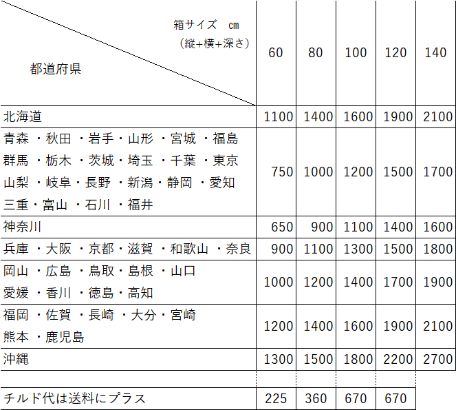 ○重量が25~30㎏の場合、600円が送料に加算されます。