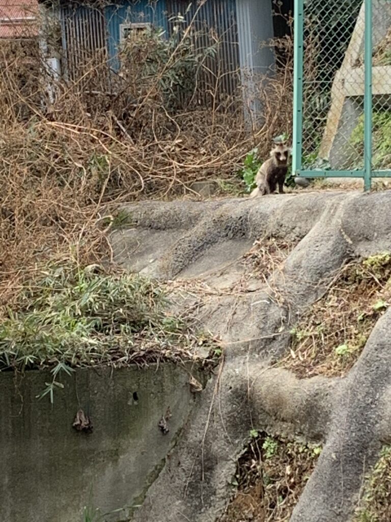 山手のタヌキ キッズ農園 2021.01.26 (火) 朝起きて山を見たら、犬?猫?ハクビシン?えっ、タヌキ⁉️ 都会の山の手、まだまだ自然が残っています。 木の実が無いのかな? こんな住宅のそば迄出てくるなんて… 自然を大切に、命を大切にしないとね。 朝見るタヌキは新しい仕事が来る知らせだとか。 直ぐにフリーライターの階下の人にお知らせ。 そしたら、タヌキがペコリと挨拶してくれたとか? 子供は病気の為に毛が抜け落ちて、何だかわからなかったみたい。 早く良くなーれっ。