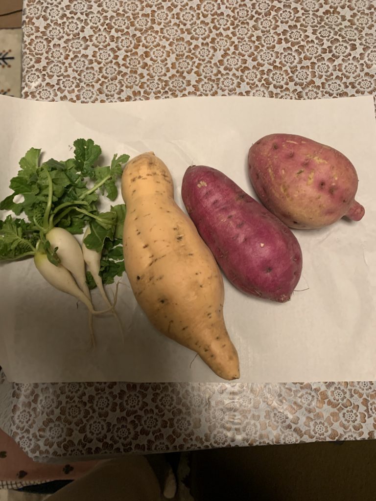 やや蔓ボケと思われる株もあったけれど、そこそこの収穫量。四種植えた中の三種。
