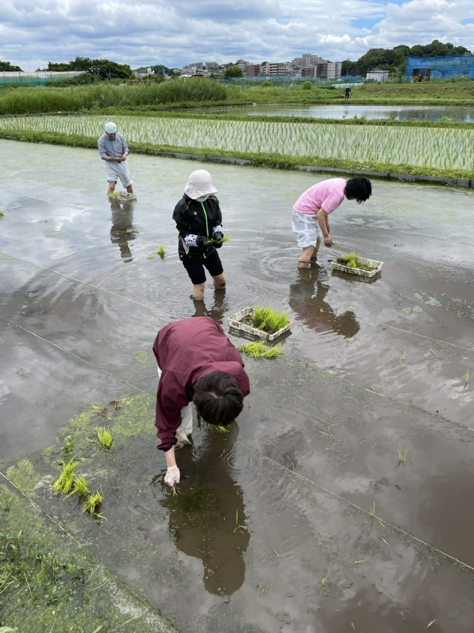 今日は曇りで田植え日和かと思いきや☀️照りだし、汗だく日焼けしそう〜
