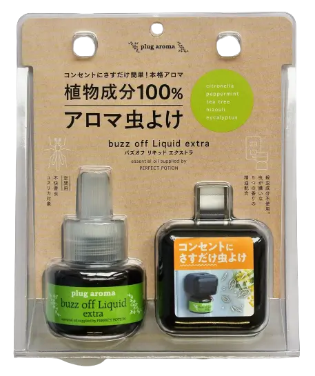 ○プラグにリキッドボトルをセットして、コンセントにさすだけ。水も火も使わず、安全でお気軽にお使いいただけます。