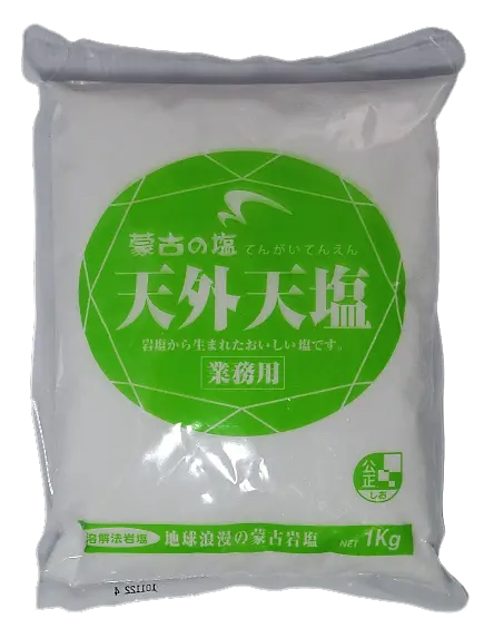 天外天塩 天外天塩 (cb001) 販売価格¥400在庫状態 : 在庫有り○成分調整は行わず、ほのかな甘みを含んだ味わい深い塩味で、海塩にありがちな苦味がありません。 ○細かく食材への浸透性が高いです。 ○はるか遠い昔、モンゴル大平原は見渡す限り海でした。その海はやがて悠久の時をへて岩塩の地層を形成。天外天塩はその岩塩を溶かして飽和水をつくり精製した塩です。 原材料 岩塩(中国・内モンゴル) 数量1kg お気に入りに追加 戻る