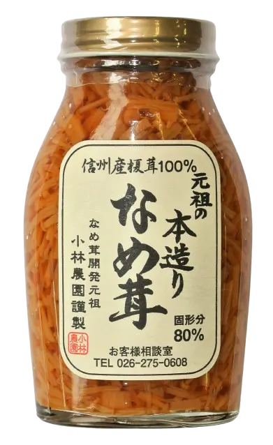 新鮮な信州産えのき茸を使用し、なめ茸開発元祖のメーカーがこだわって作り上げた本格派の手作りなめ茸です。