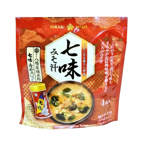 ○こだわりの香り高い八幡屋礒五郎の七味と、まろやかな信州味噌が織りなす大人のみそ汁です。